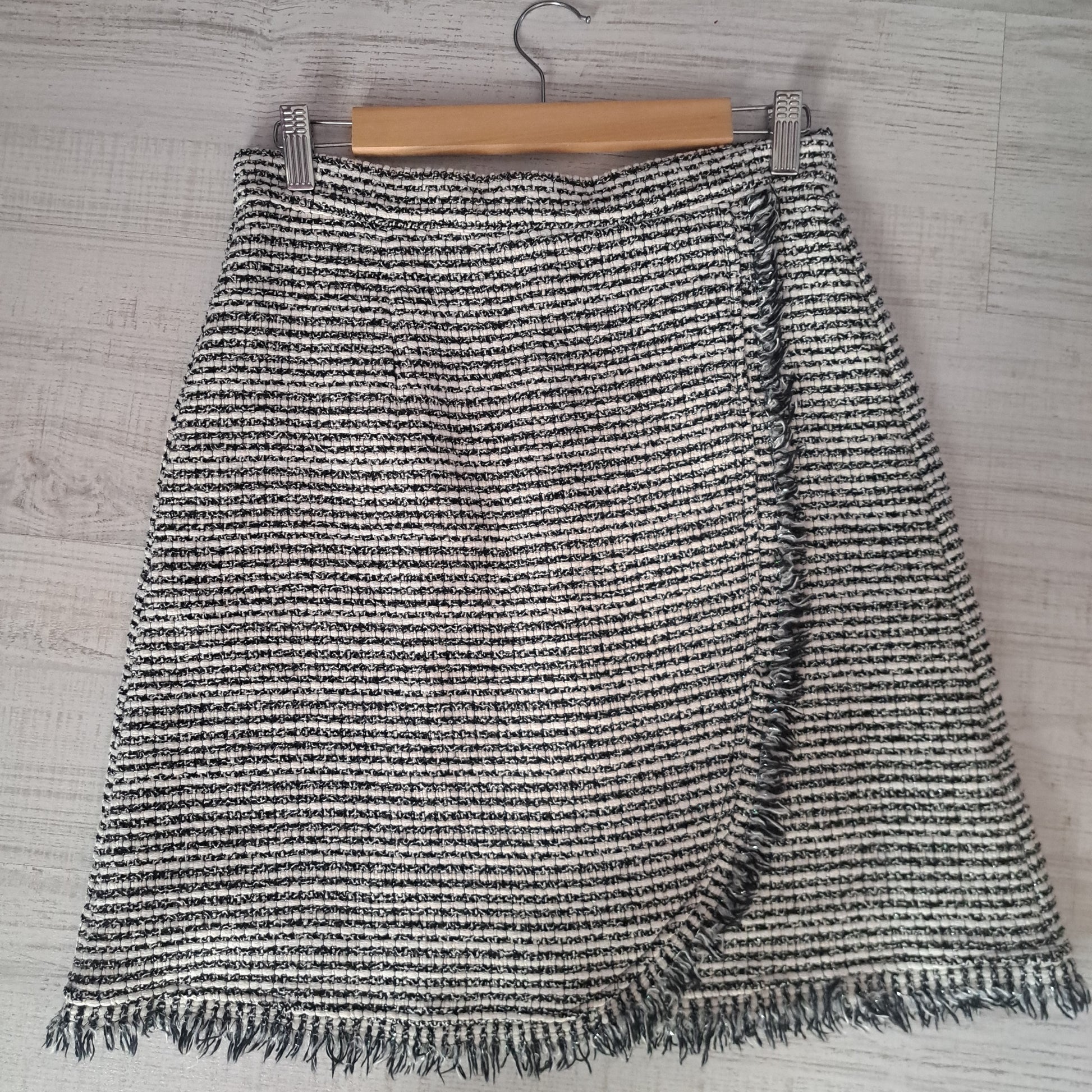 Fusta mini, fals petrecuta, cu fermoar la spate. Este captușita cu satin subțire.