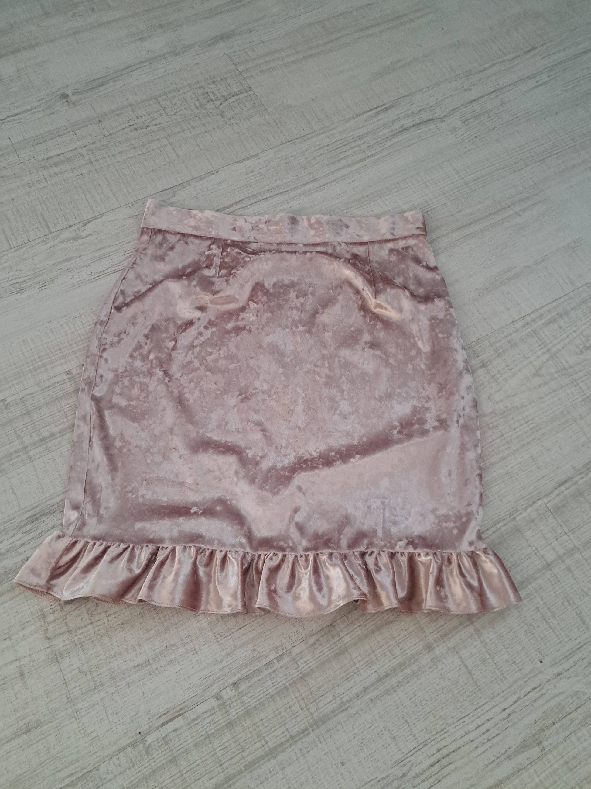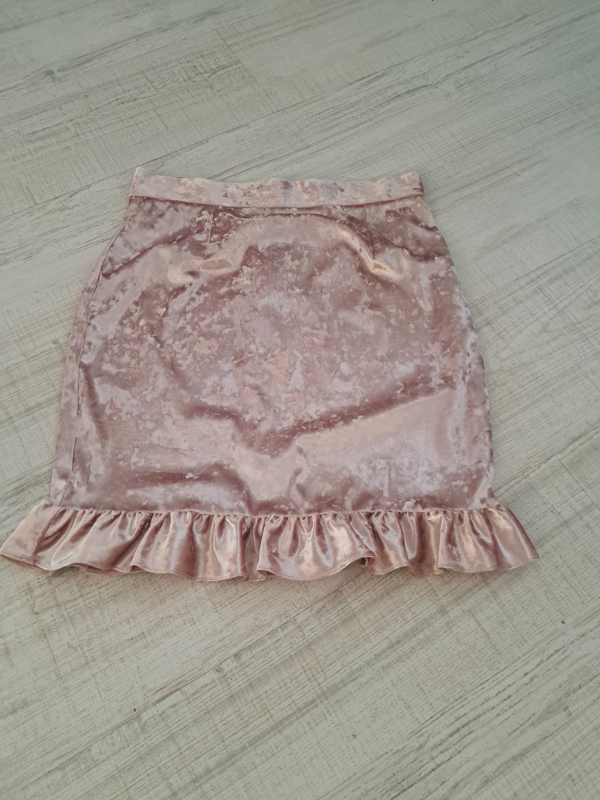 Fusta scurtă din catifea cu aspect marmorat cu volan este confortabilă și ușoară.